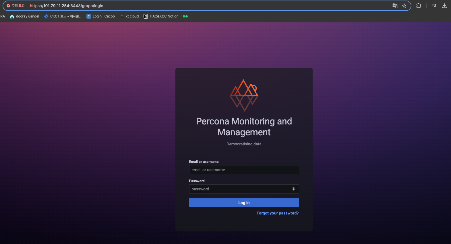 - 웹 브라우저를 열고 PMM 서버의 URL (예: https://101.79.***.***:8443)을 입력합니다.