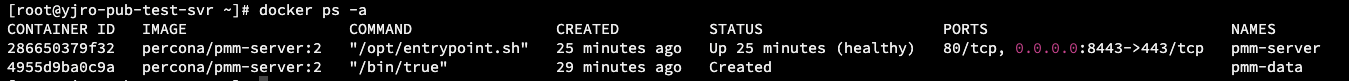 docker run --detach --restart always --publish 8443:443 --volumes-from pmm-data --name pmm-server percona/pmm-server:2