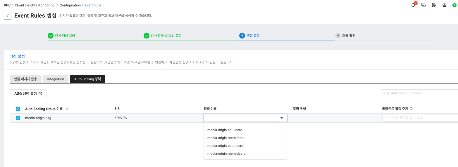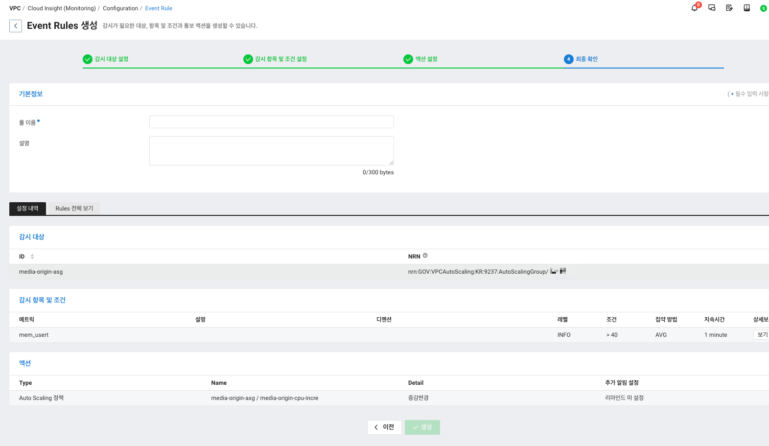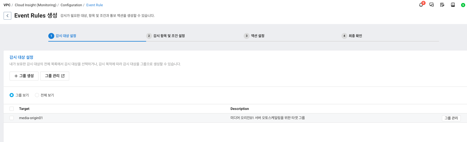 이제 이 오토스케일링 그룹을 대상으로 이벤트 룰을 생성할 것입니다.