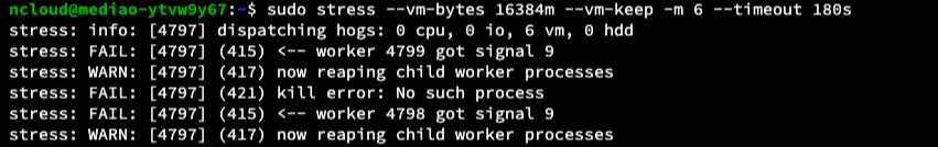 sudo stress --vm-bytes 16384m --vm-keep -m 6 --timeout 180s