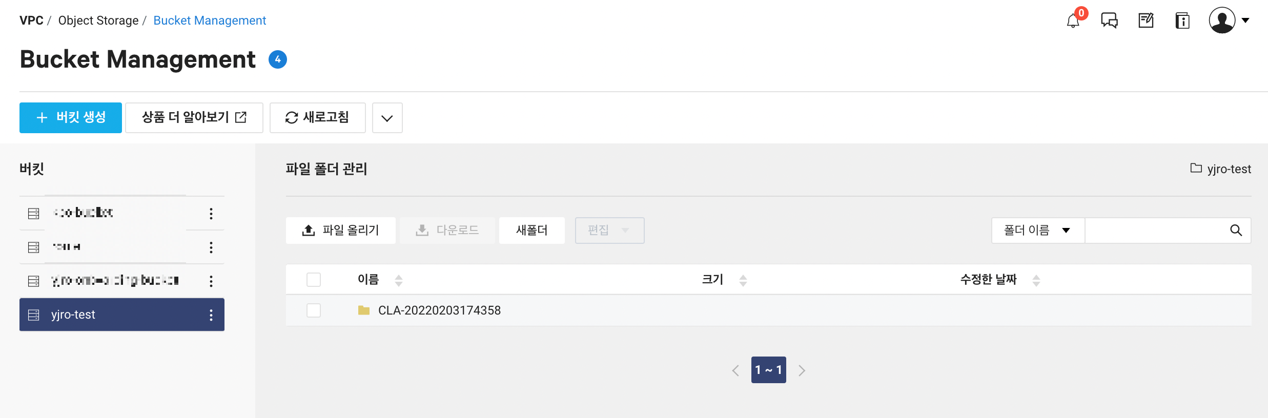 Object Storage의 버킷에서 보면 CLA 로그가 내보내진 것을 확인 가능하다.