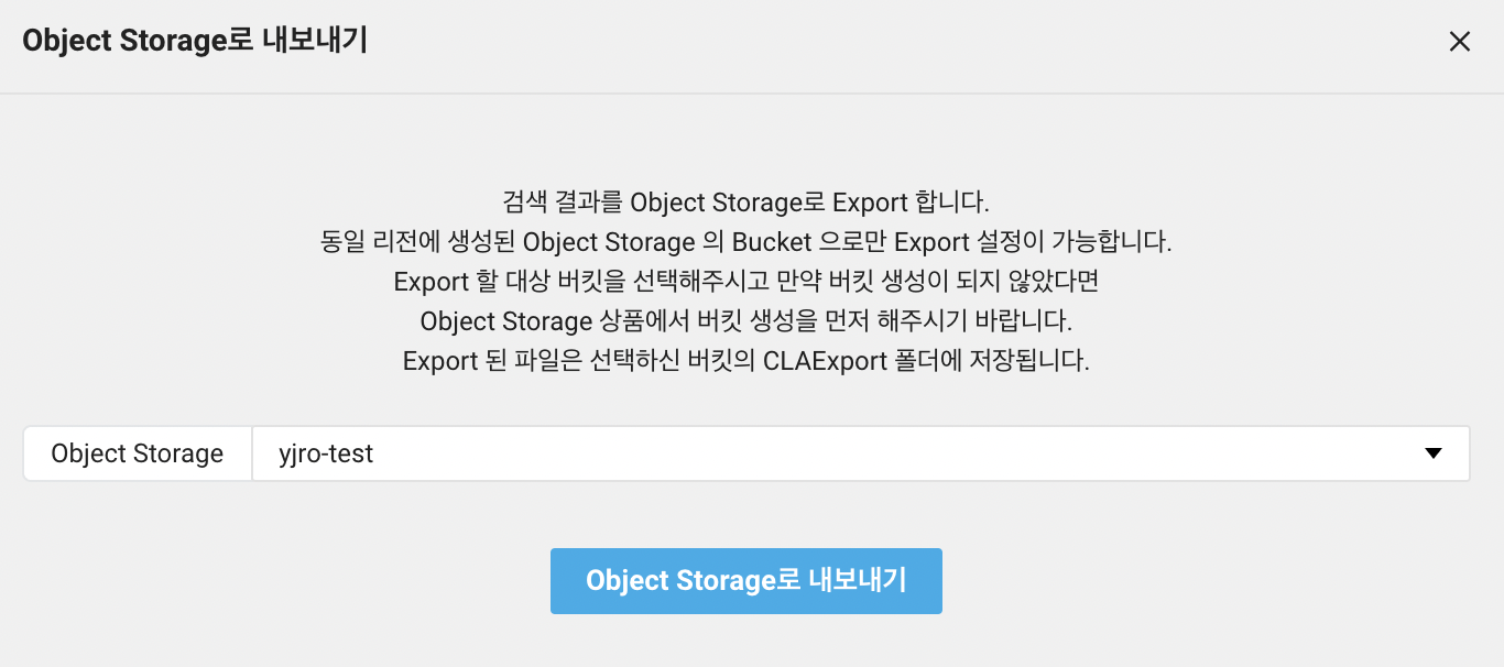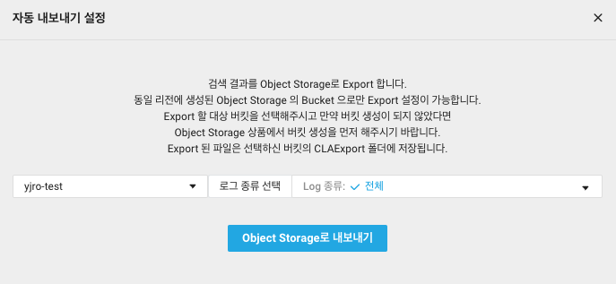 Cloud Log Analytics > Search > Object Storage로 내보내기 선택