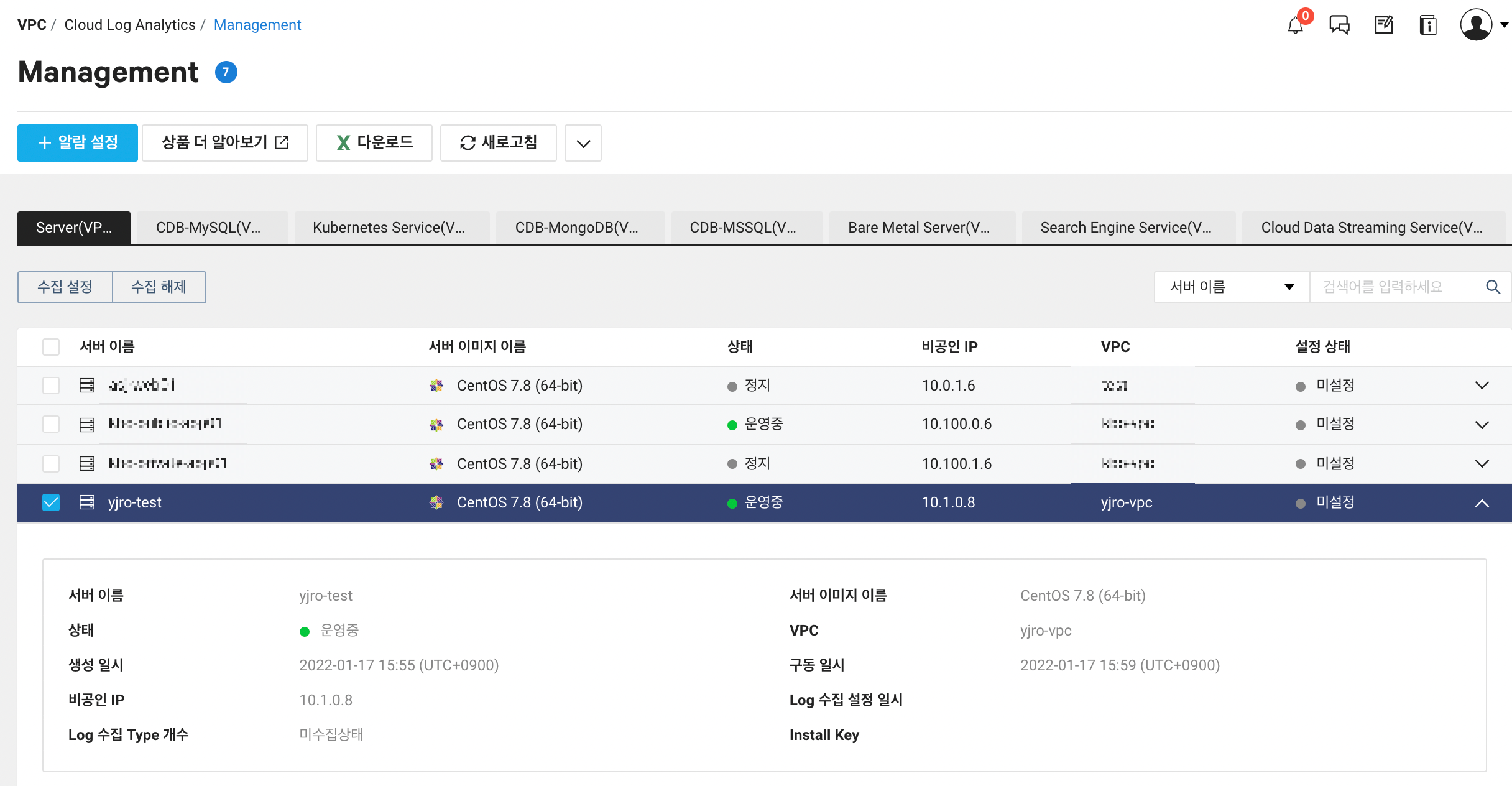 Cloud Log Analytics > Management > 로그를 수집하고싶은 서비스 선택