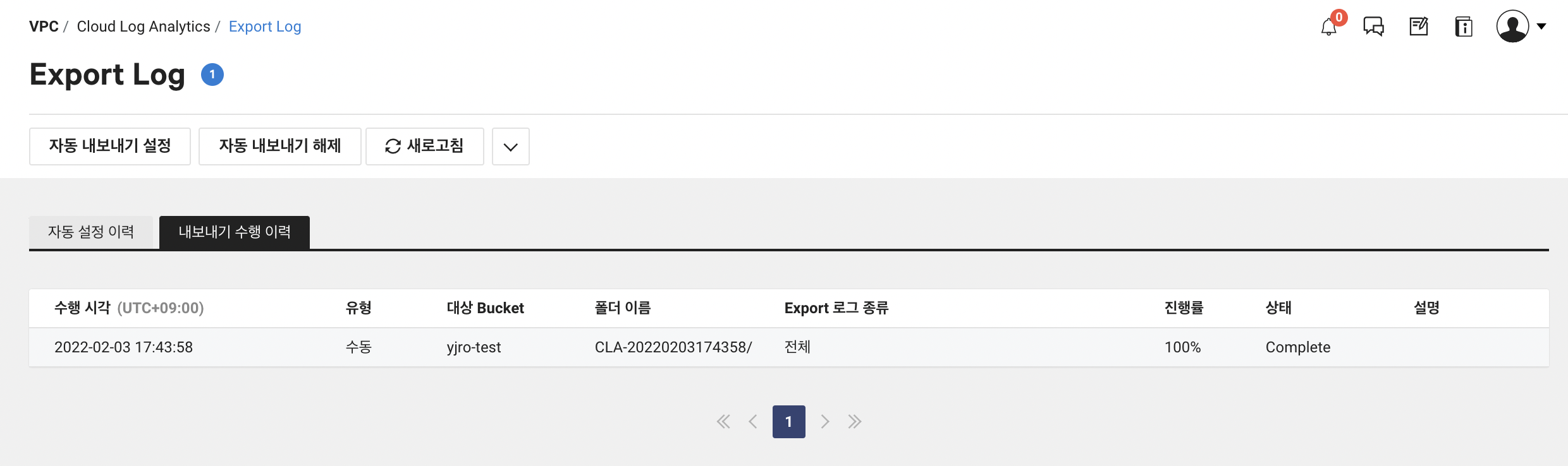 Cloud Log Analytics > Export Log > 자동 내보내기 설정